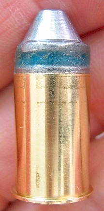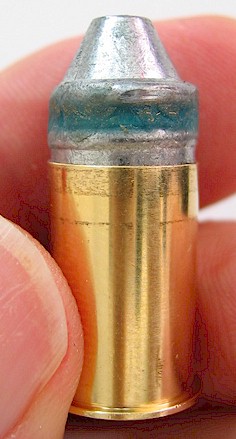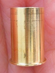 The bullet shoulder that bears the lubricating groove has a diameter of 11.50 mm. The cartridge base is 10.90 mm large, and is growing to 11.20 mm when reaching the lower edge of the shoulder. By the bullet seating (second picture) the case mouth is forced from 10.90 mm to 11.85 mm. After the crimping, the cartridge case diameter is compressed against the bullet to 11.50 mm.