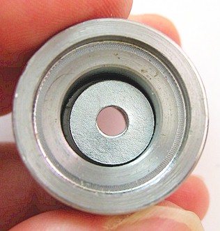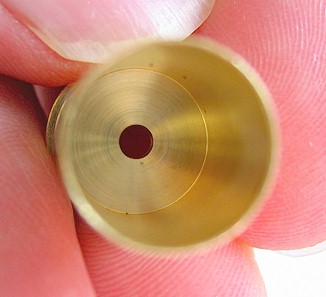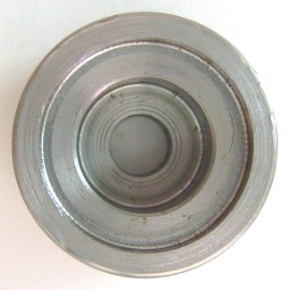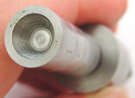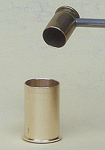 2 - Lubricate the case before re-calibrating it with the crimper block as shown above. Note the lower position of the external groove.
