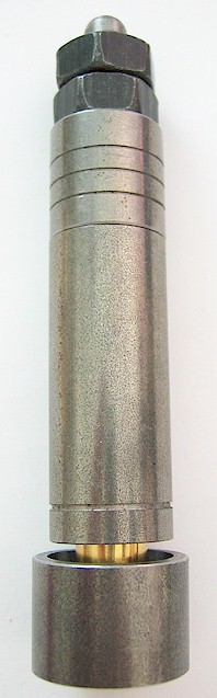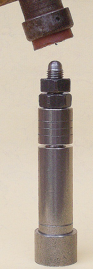4 - Using a mallet, force the bullet into the case until the bullet lower shoulder is in contact with the case upper edge. Turn the upper nut against the lower one to secure the right length of the pushing rod.