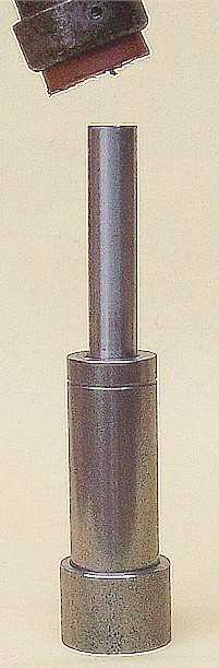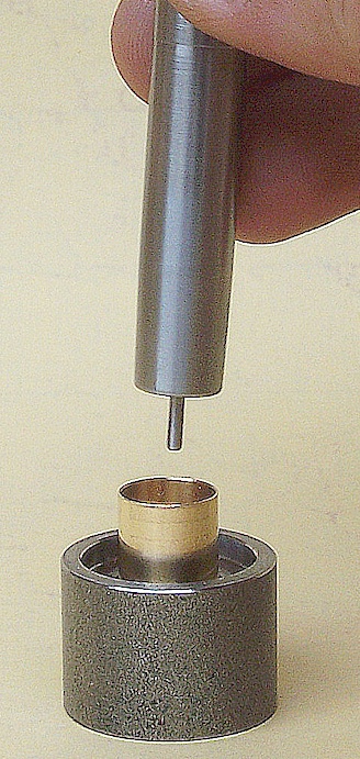 3 - Drive the re-calibrated case out of the crimper block through the basement using the extractor rod.