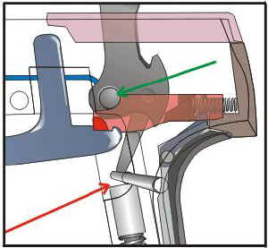 poignée, on trouve une grosse goupille (flèche bleue) qui sert d'axe de rotation pour la