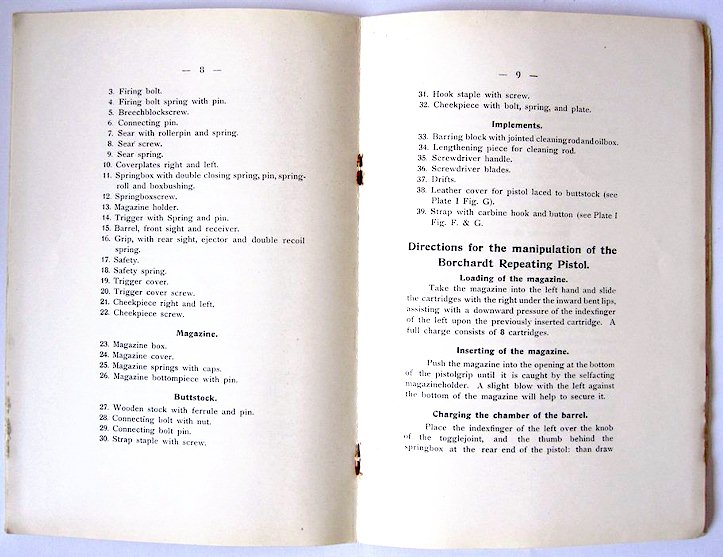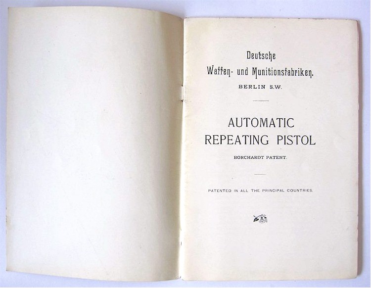 Genuine vintage Borchardt pistol (C93) user manual for sale