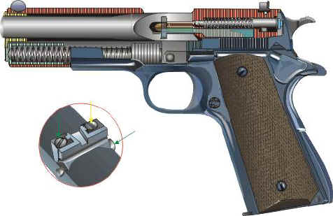 cheap caliber handgun that includes the maximum of parts of the 1911 model. The first Colt