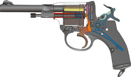 Léon died on February 23, 1900, and the company was then managed by his two sons : Charles (born in 1863) and Maurice (born in 1866). The company's name was changed to : "Fabrique d'Armes et Automobiles Nagant Frères". On December 23, 1902, Emile Nagant died at its turn. Even if by 1910, some improvements were brought to the famous model 1895 revolver, no invention in the firearm field came up any more in the firm until all the tools and licenses to produce the model 1895 were bought by the Polish Radom arsenal in 1928. The above recaps the headlines of the firm's activity. Now we will focus on the Nagant revolver line. The main thrust of this ebook is to provide a detailed study of the famous 1895 "gas seal" Russian model. In Russia, the name of Nagant has the same generic meaning as Colt has when talking about a revolvers in the West. More than 2,000,000 models 1895 were produced up to 1944. Plenty of these obsolete but interesting handguns are now available for a few bucks on the collectable firearms markets. But the whole Nagant revolver line is yet to be known by many collectors. That is why we will propose you in our ebook an overview of the complete Nagant revolver line, that begins with the 1878 model and ends with the 1910 "gas seal" model, equipped with a central extractor and a right-dropping cylinder.