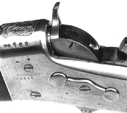 The Nagant brothers were not content with just reproducing of the Remington rifles. They improved the rifle in many ways that were accepted by Remington. One of the most significant improvements was the adaptation of the "rolling block" lock to a double-barrelled shotgun. First fitted with a double trigger, one for each hammer, then with a single one which operated the two hammers in turn. These weapons are known under the name of : "Remington-Nagant". Until 1900, the Nagant's produced rifles inspired by the "rolling block" principle. But in 1876 they also produced an 11 mm caliber rifle for Greece, based on a locking system developed by a Greek Artillery officer, whose name was Enstathios Mylonas. With its falling block, it was rather similar to the Belgian Comblain rifle.