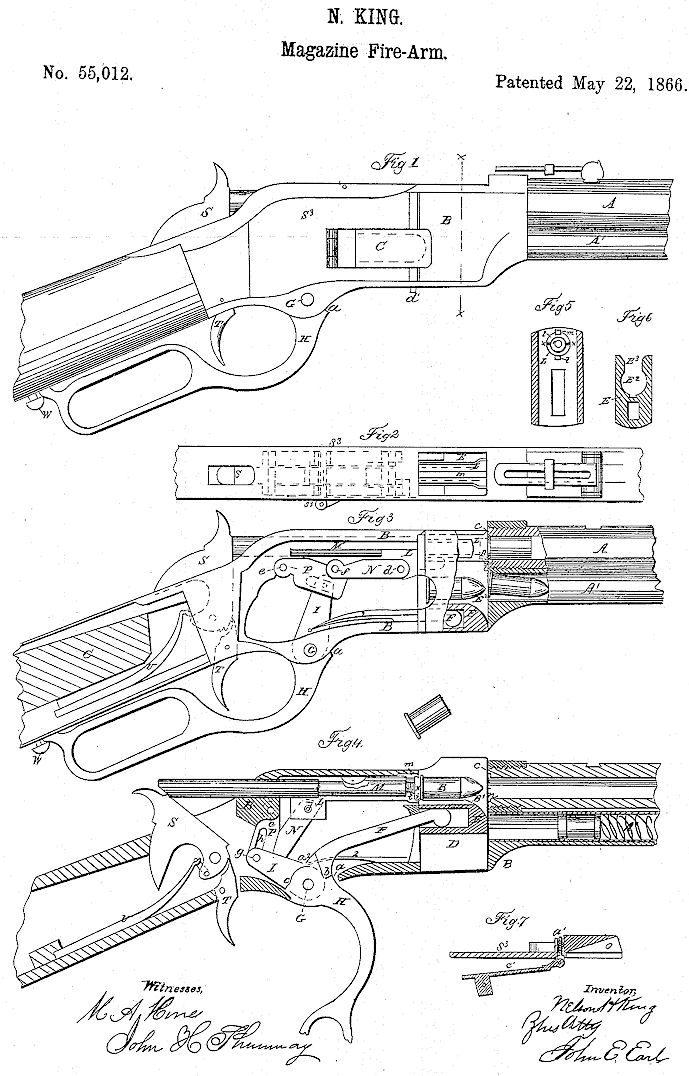 Winchester Model 1866 US Patent no. 55,012 & 57,808